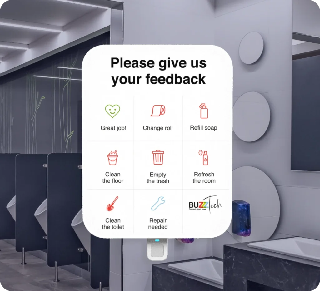 Shai, the manager of a hospital, faced recurring issues with poor cleaning quality in public washrooms. After installing Buzzz, managers and employees worked together to improve cleanliness with real-time feedback. Buzzz reduced the need for inspections, resulting in a cleaner facility and improved appearance.