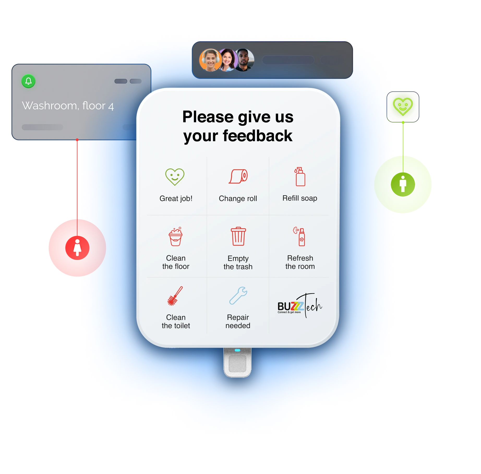 Our clients report a 75% decrease in visitor complaints, with just 1 cleaner entry required per 50 facility visitors and a response time of only 16 minutes. Some companies save over 1,400 hours with BuzzzTech.