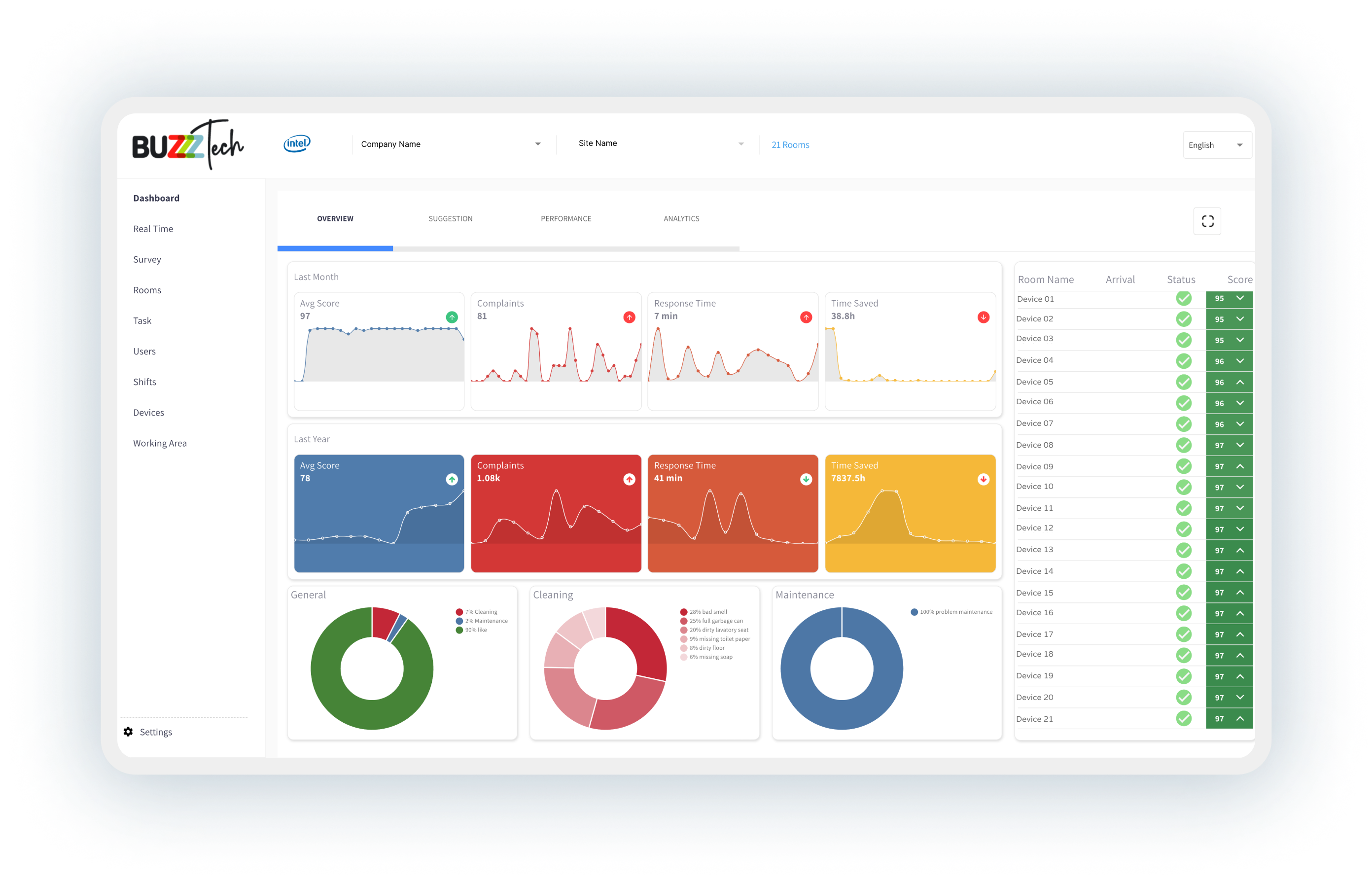 BuzzzTech provides end-to-end solution for the awarding standards of the cleaning system.